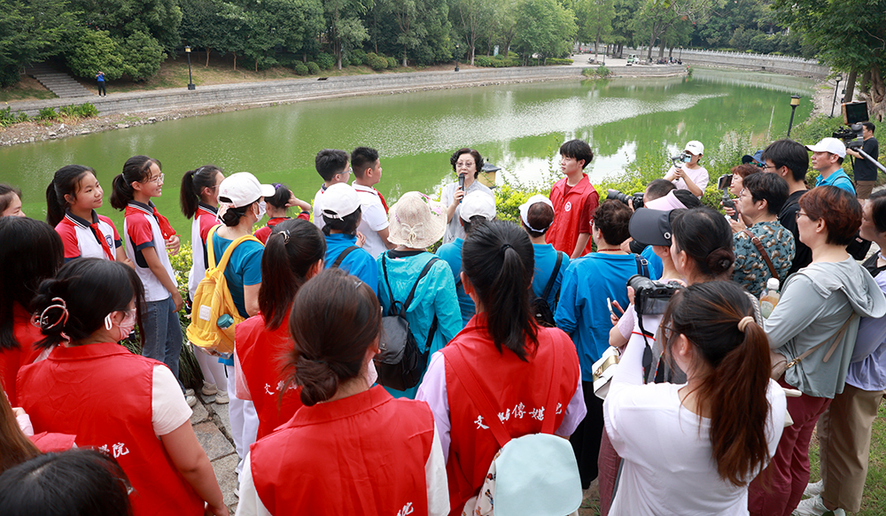 内城河畔,大家认真聆听专家讲解