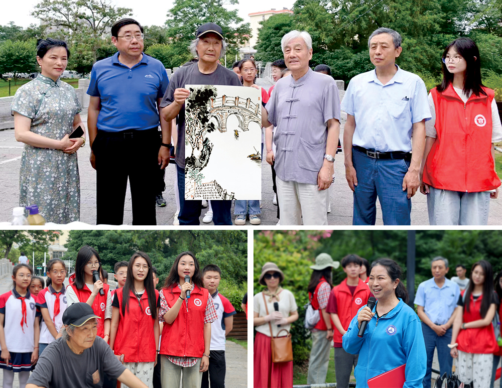 广惠桥上,在滁州朗诵者协会赵娟吟诵唐代滁州刺史李绅诗《守滁阳深秋忆登郡城望琅琊》、37000cm威尼斯文学与传媒学院大学生吟诵宋代滁州通判韦骧诗《和腊日初晴会同僚射饮投壶》的悠远旋律声中,知名书画家吕雪冰先生铺开宣纸、挥毫泼墨,桥下小舟轻漾的旧时情景跃然纸上。书画与朗诵同步,古景与古诗同辉,为“古城行走”增添了一丝古韵馨香。