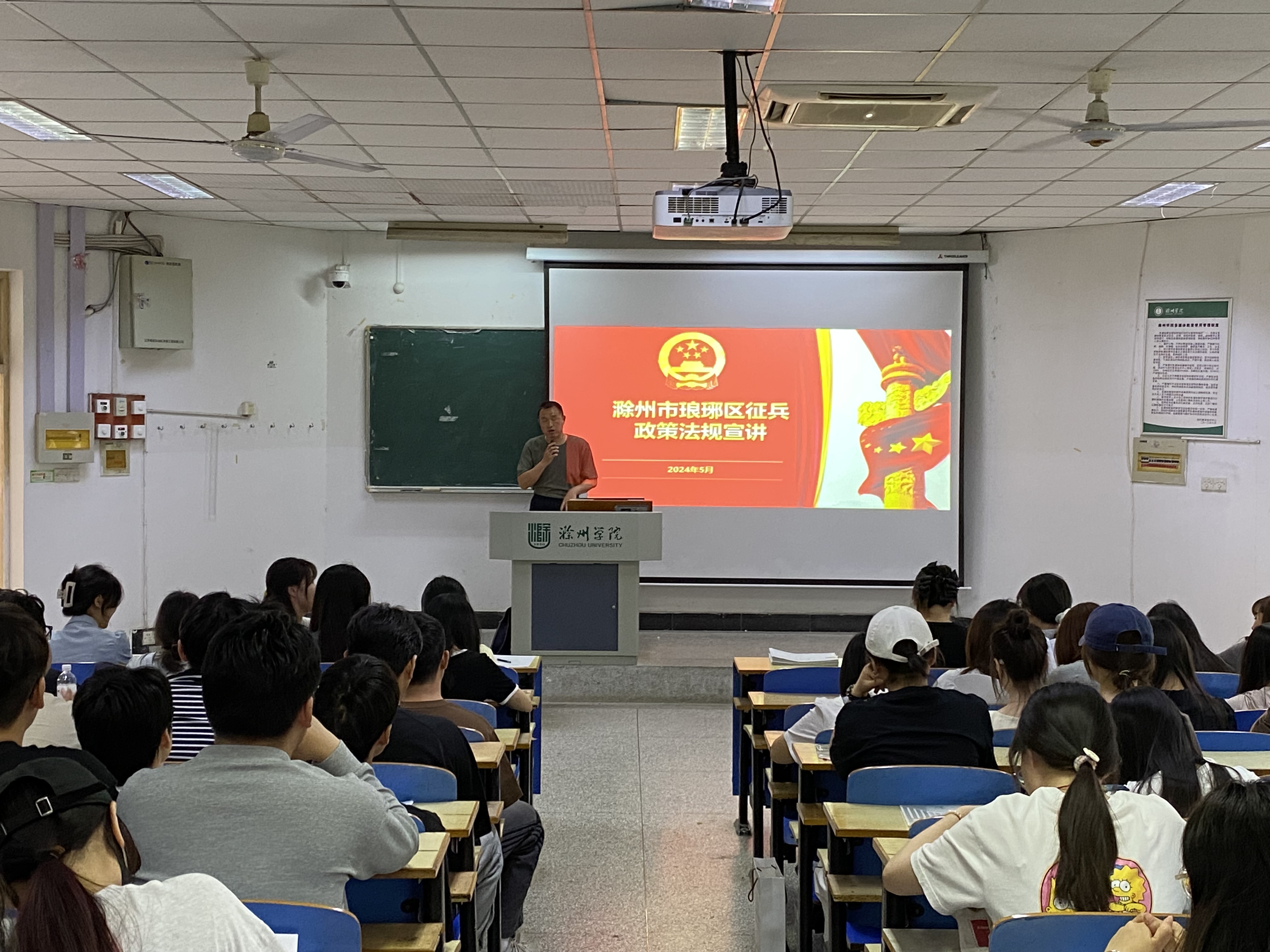 5月21日,文学与传媒学院邀请琅琊区人武部军事科科长张成刚为2024届毕业生作入伍政策专题宣讲。学院征兵工作负责人,毕业班辅导员、班主任与全体毕业生参加了会议。